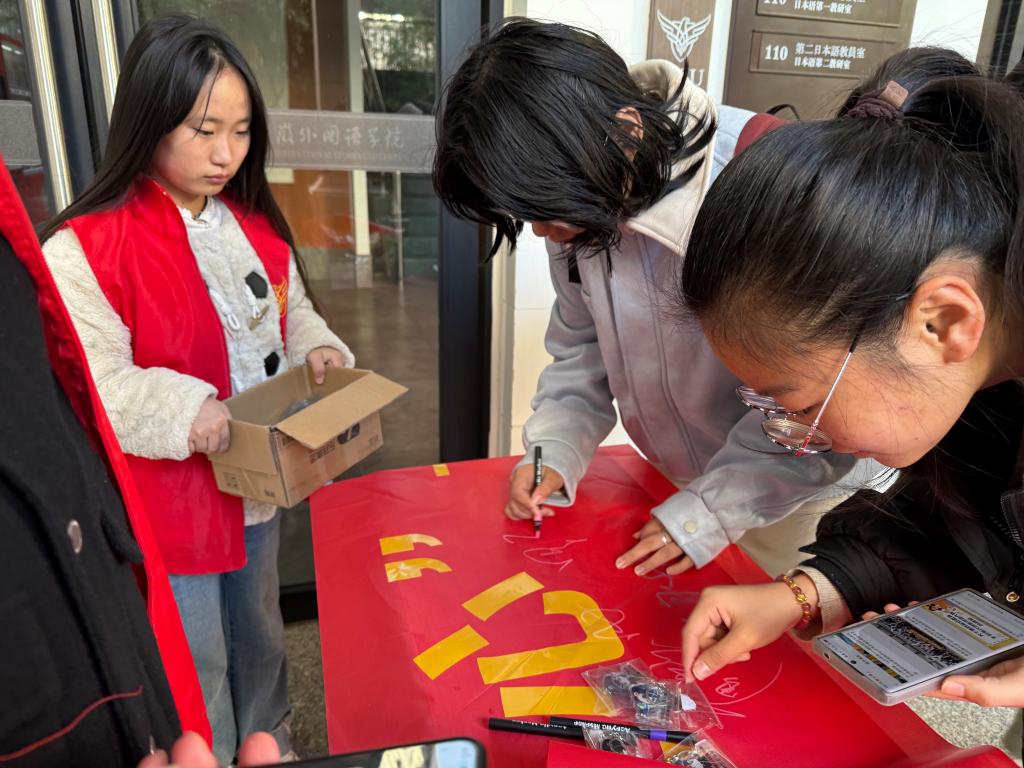 当前电信网络诈骗手段不断翻新,校园已成为诈骗高发区域,刷单返利、虚假贷款、冒充熟人等骗局严重威胁学生财产安全与校园稳定。本次活动通过趣味化、场景化的形式,让同学们在沉浸式参与中掌握反诈知识。活动现场,参与同学依次在反诈主题横幅上签名立誓,领取含反诈标语、警示图标元素的定制钥匙扣。