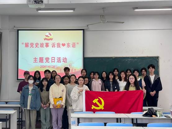 为深入学习贯彻习近平新时代中国特色社会主义思想,持续开展党史学习教育,2024年4月24日,东方语言学院学生党支部组织开展了“解党史故事,诉我❤东语”集贴纸主题党日活动。此次活动旨在深化党员和积极分子对党史的认识,强化党性教育,激发全体党员的责任感和使命感。