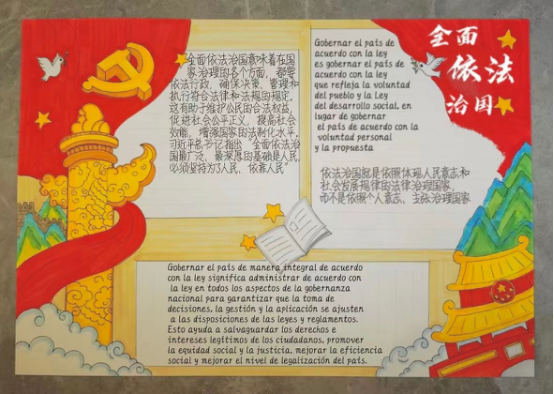 “三进”主题墙报设计活动参赛对象主要为2023级各团支部,在“三进”学生团队的精心指导下,各团支部认真学习《习近平谈治国理政》各专题内容,在充分理解和领悟的基础上,集思广益、团结协作,用所学专业外语呈现出创意十足的墙报设计作品,展现了西方语言学院独有的学科专业特色。