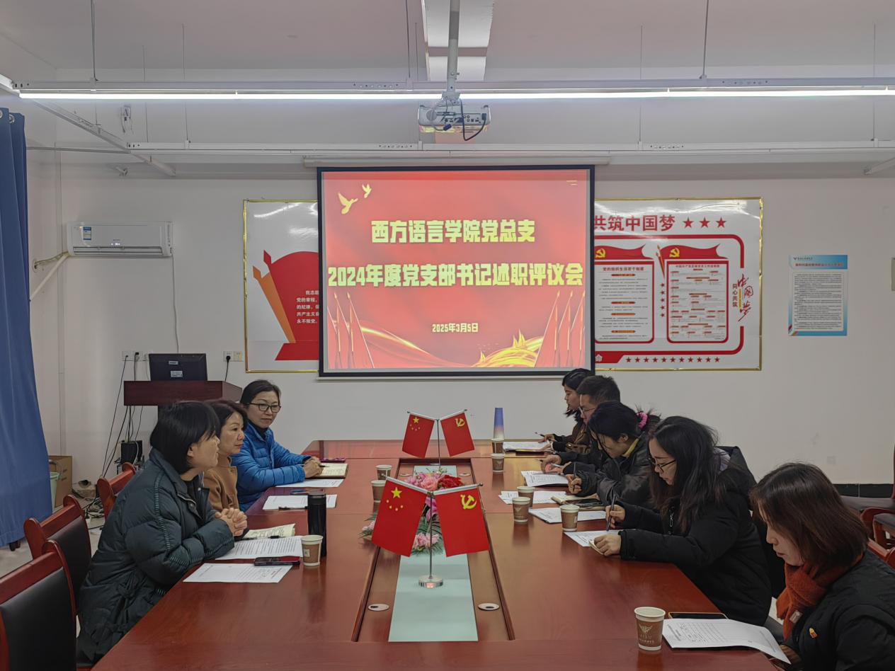 为深入学习贯彻习近平新时代中国特色社会主义思想,扎实推进基层党组织建设,提升党建工作质量与党支部书记履职水平,西方语言学院于3月5日上午召开2024年度党支部书记述职评议会。会议由党总支副书记张海清主持,党总支委员、党支部书记及党员代表参加,特邀校党委委员、校长助理赵香飞、西方语言学院院长汪承平出席。