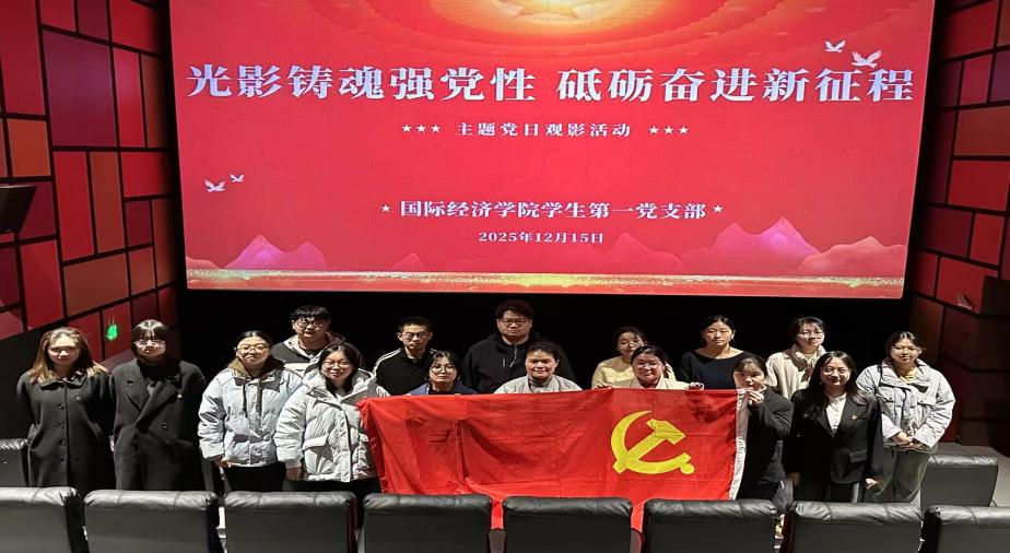 为加强党性教育,从红色光影中汲取爱国力量,12月15日下午,国际经济学院学生第一党支部以“光影铸魂强党性 砥砺奋进新征程”为主题,组织党支部学生党员走进影院观看抗战题材电影《得闲谨制》,把银幕呈现的爱国故事转化为党性教育鲜活素材,实现爱国情怀涵养与党性修养提升的双向赋能。