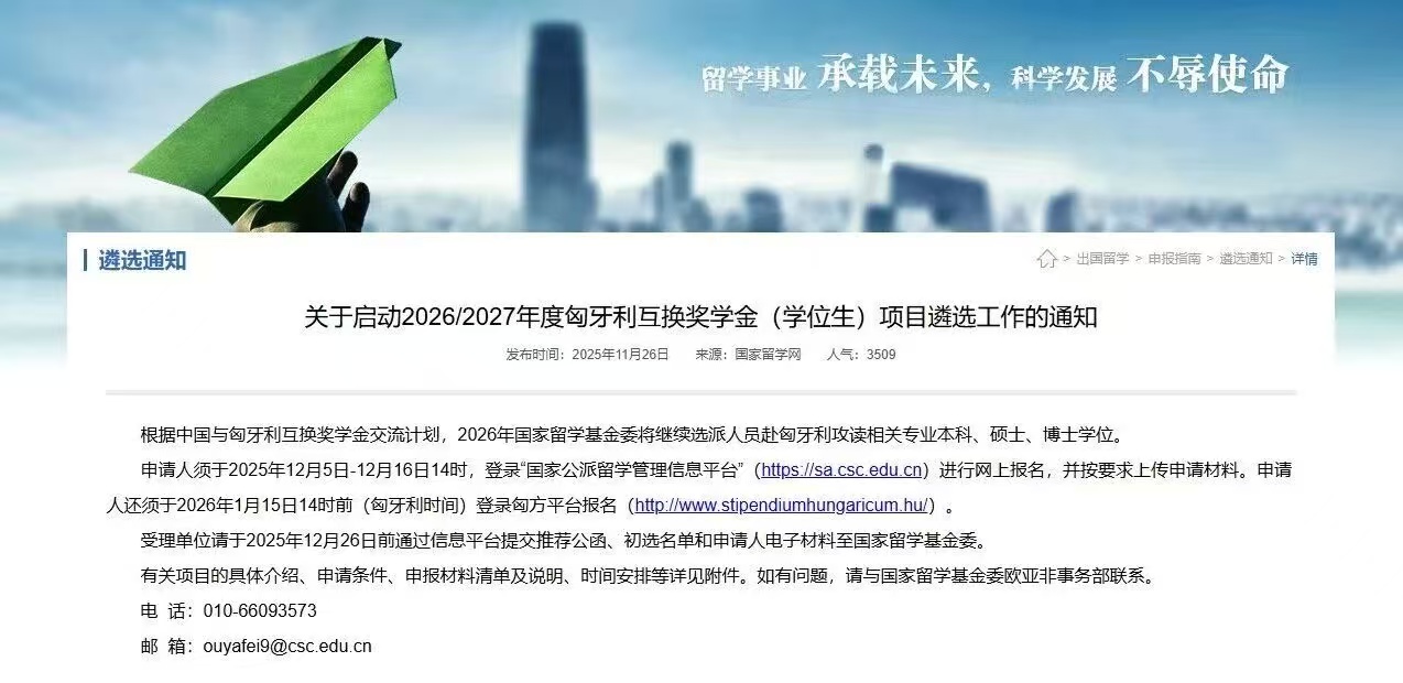 有关单位:根据中国与匈牙利互换奖学金交流计...