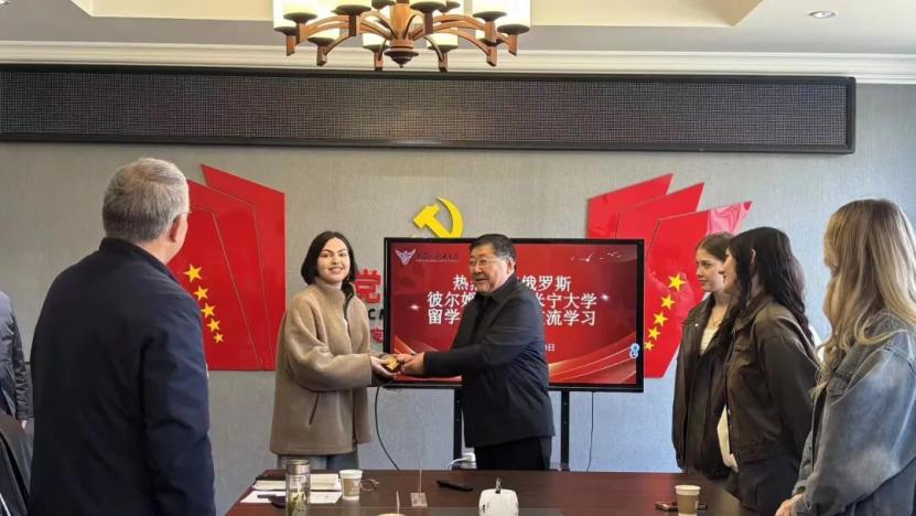 分管校领导在欢迎会上代表全校师生向27名俄罗斯留学生表示热烈欢迎。他介绍了我校“学兼中外,知行合一”的办学理念及在国际交流方面取得的成果。他指出,2024年首批彼尔姆大学留学生到校,今年又新增米宁大学留学生,留学生总人数创下新高。同学们的到来为校园增添了靓丽风景,也为“中俄教育年”写下了生动注脚。他寄语留学生勇敢面对文化差异与学业挑战,积极参与校园活动,在了解中国风土人情的过程中实现跨文化融合,同时要遵守中国法律与校规,以文化使者的身份书写中俄青年一起学习、相互交流的美丽篇章。