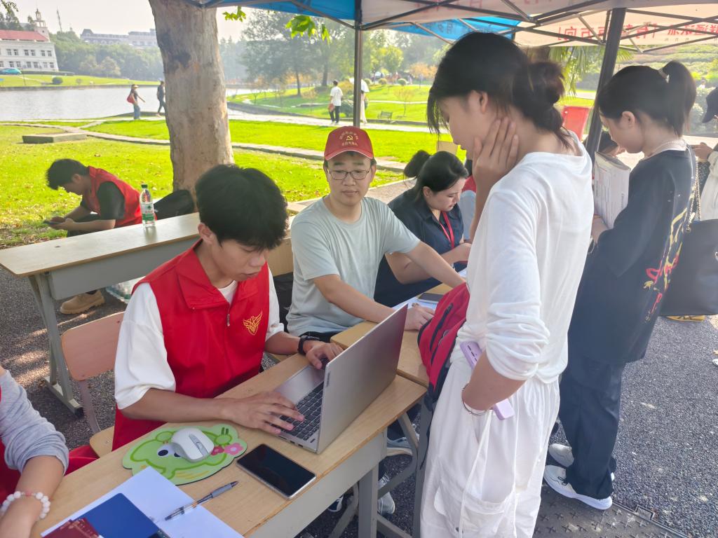 为确保迎新工作高效暖心、万无一失,学院提前谋划、精细部署,成立迎新工作专项小组,细化分工、明确责任,从报到流程优化、场地布置、物资筹备到人员安排均制定详实方案,为迎新工作筑牢基础。报到现场,学院特设“一站式”服务专区,身份核验、资料登记、校园一卡通办理等环节衔接顺畅,高效便捷。尤为亮眼的是,学院充分发挥党组织战斗堡垒作用和党员先锋模范作用,组织师生党员组建志愿服务队,党员同志们亮身份、践承诺、作表率,主动承担引导咨询、行李搬运、答疑解惑等工作,用热情与责任为新生保驾护航,成为迎新现场一道亮丽的红色风景线。同时,学院将安全教育融入迎新全过程,重点开展防诈骗宣传教育,切实提升新生安全防范意识,让初入校园的新生深切感受到学院的关怀与温暖。