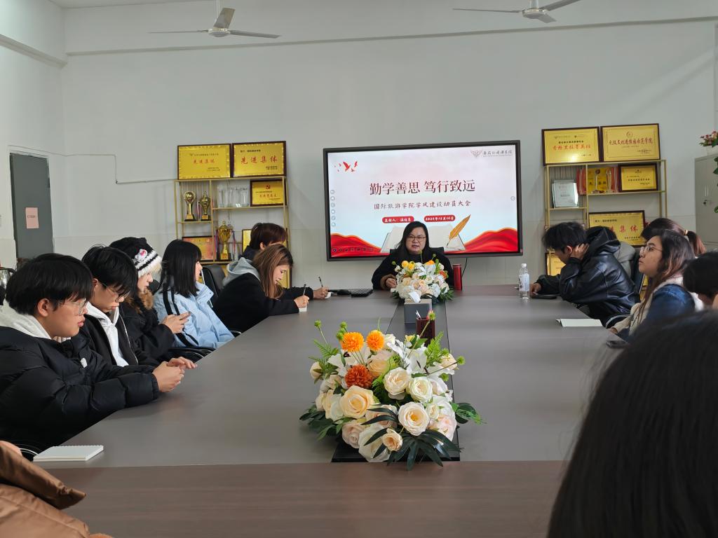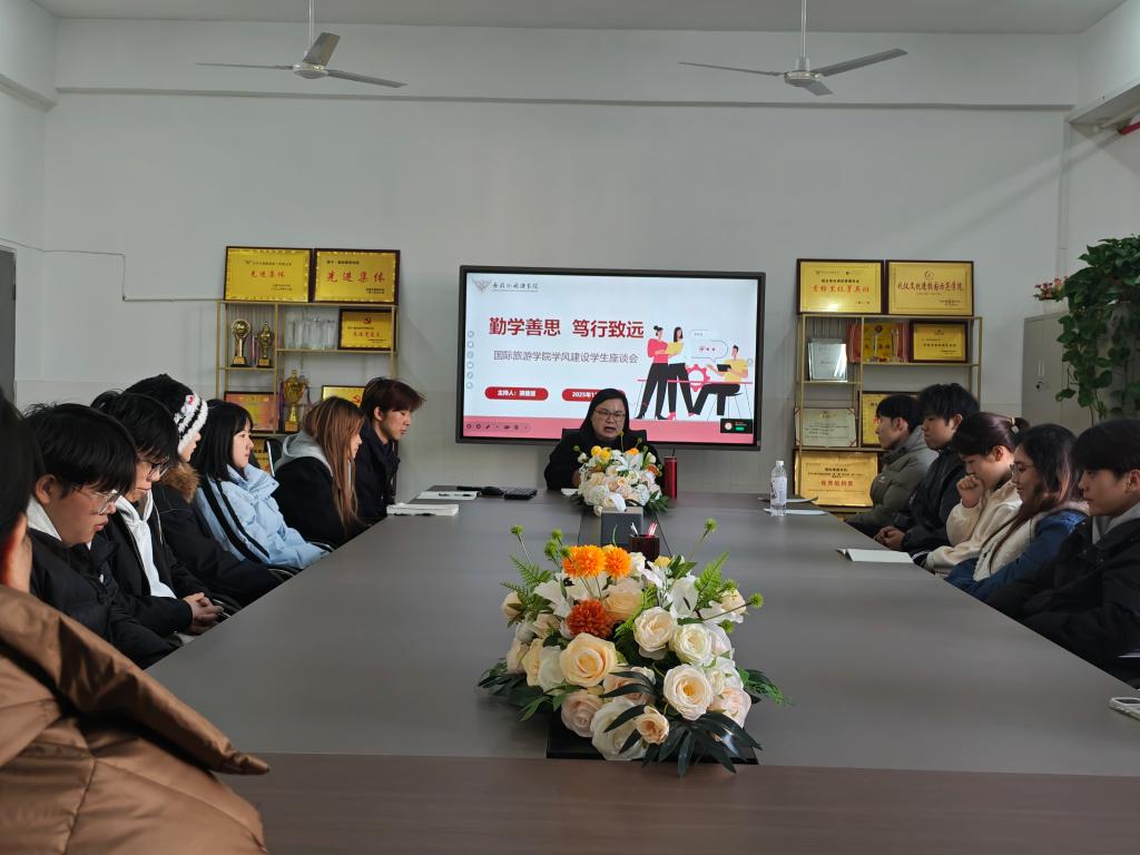 为深入贯彻落实党的二十届四中全会精神,扎实推进学院学风建设提质增效,引导学生明确学习方向、激发学习内生动力,12月16日,国际旅游学院在学院310会议室召开学风建设动员大会暨学生座谈会。会议由学院党总支副书记满德慧主持,辅导员夏文清及大一、大二各班级学习委员、学生代表参会,共话学风建设,共促成长成才。