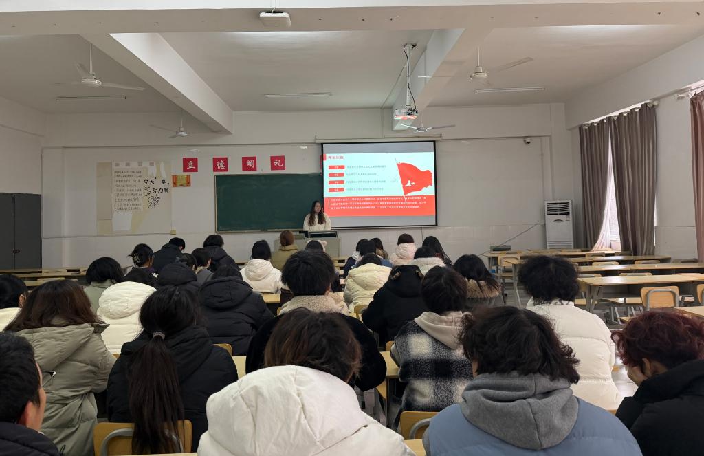 在专题学习环节,雷婉婷向同学们系统讲解了中国式现代化的内涵与特征。她从“中国共产党领导的社会主义现代化”这一核心定义出发,详细阐释了中国式现代化的五大鲜明特征,并结合理论依据与伟大实践,让同学们深刻认识到中国式现代化的独特优势与重大意义,理解青年一代在其中肩负的历史使命。