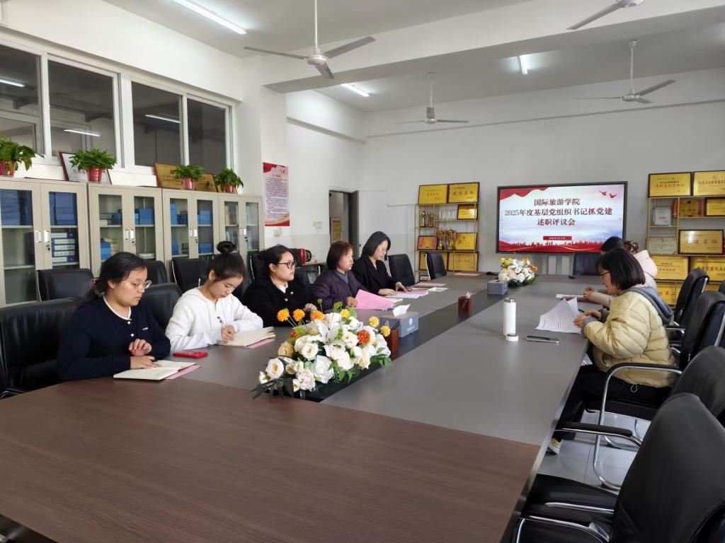 为深入贯彻落实新时代党的建设总要求,进一步压紧压实基层党建工作责任,3月11日,国际旅游学院在310会议室召开2025年度基层党支部书记党建述职评议考核会。会议由学院党总支书记张华主持,各直属党支部书记、支部委员及党员代表参加会议。