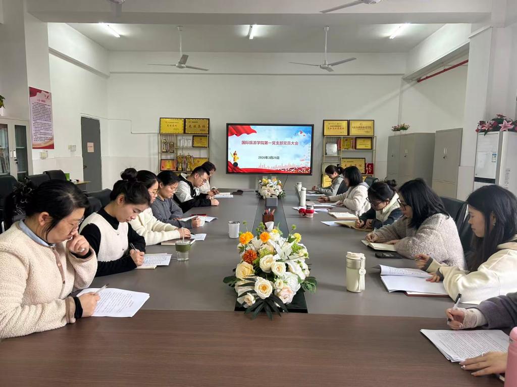 2026年3月25日下午,国际旅游学院第一党支部开展2025年度组织生活会。会议由第一党支部书记傅为主持,全体党员参加。