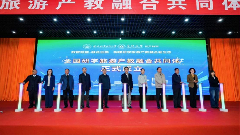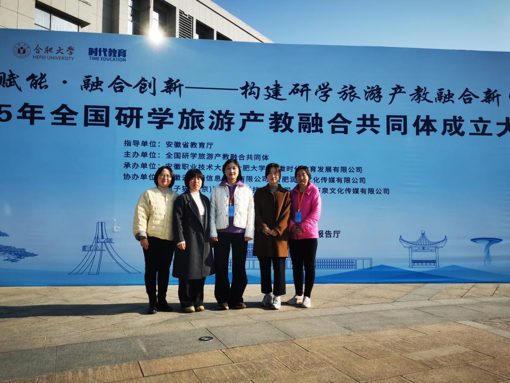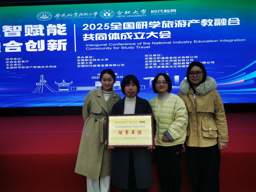 12月6日,由安徽省教育厅指导,安徽职业技术大学、合肥大学和安徽时代教育发展有限公司联合承办的“全国研学旅游产教融合共同体成立大会”在安徽职业技术大学成功举行。院旅游管理系主任高小华与系部5名教师国际旅游学院国家金牌导游工作室负责人惠雪梅、工作室成员李礼及企业导师代表孙金玲共同参会,与全国旅游院校、行业企业代表齐聚一堂,共谋研学旅游人才培养与产业创新路径。