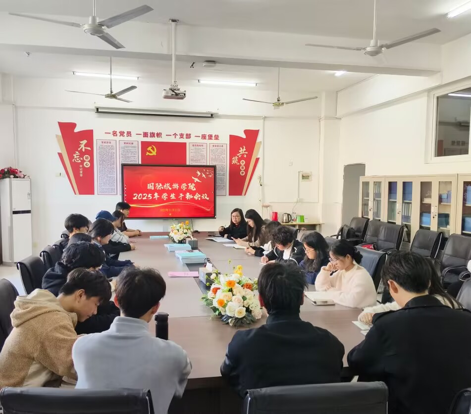 11月11日下午,国际旅游学院学生干部大会在文传310会议室顺利召开。学院党总支副书记满德慧主持会议,团总支书记陈佳妮及全体学生干部参加。