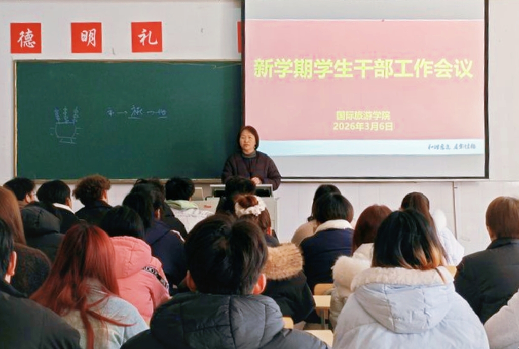 为进一步加强学生干部队伍建设,明确新学期工作方向,提升学生骨干的服务意识与履职能力,3月6日,国际旅游学院召开新学期学生干部工作会议。各班级班长、团支部书记、学生会主席团成员、班长联合会干部及青年志愿者协会负责人参加会议。