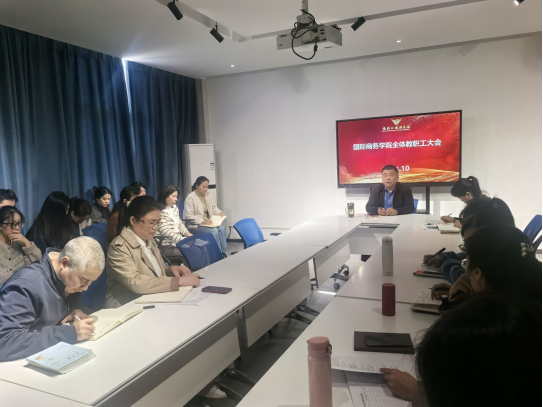 此次会议的召开,进一步强化了国际商务学院教职工的政治理论素养和师德师风意识,为构建师德高尚、业务精湛的教师队伍搭建了学习交流平台,也为持续推进学院教育教学改革、提升人才培养质量奠定了坚实的思想基础。