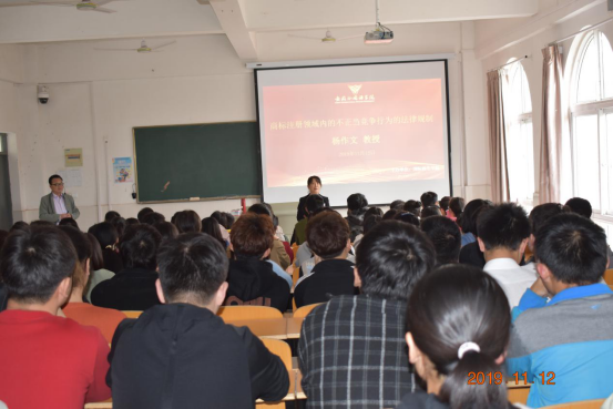 讲座分两个部分进行;第一部分:杨作文教授就近期举办的经济法研究会讨论内容对同学们进行讲解。第二部分:杨作文教授就注册商标法律修改的内容对同学们一一阐述。他指出,商标注册领域内的不正当竞争行为与我们的生活息息相关,国家也在通过各种手段去完善相关法律法规。