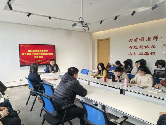 为深入学习贯彻习近平总书记关于树立和践行正确政绩观的重要论述,切实把思想和行动统一到党中央决策部署上来,紧扣立德树人根本任务,推动学院高质量发展,4月8日,国际商务学院组织开展专题政治理论学习研讨,聚焦“树立和践行正确政绩观学习教育”核心主题,学院领导班子、全体教职工参会,会议由学院党总支书记赵有广主持。