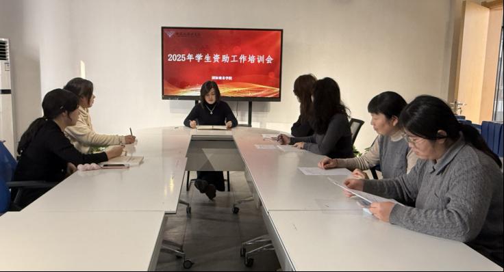 为提升学生资助工作专业化水平,近日,国际商务学院组织开展学生资助工作培训与经验交流活动,会议由党总支副书记何文翔主持,全体辅导员及学工秘书参会。