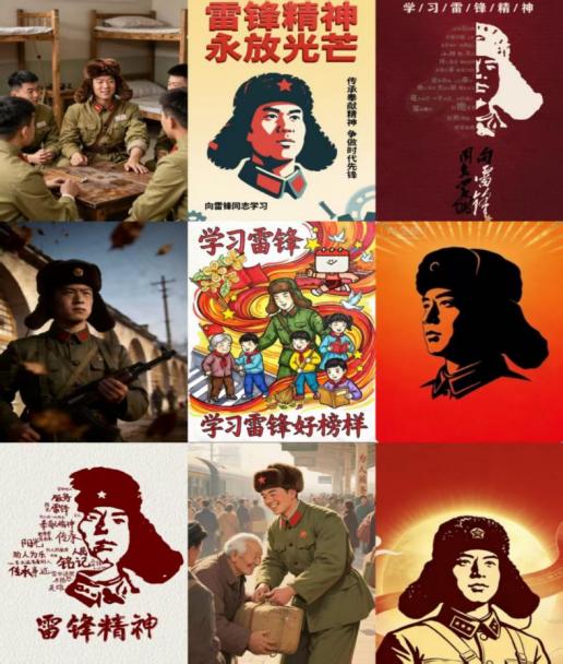 活动启动后,得到了全院各年级学子的热烈响应和积极参与,同学们踊跃报名、主动探索,充分发挥专业所长与创新思维,积极投身AI画像创作。活动前期,学院专门开展AI绘图基础指导,帮助同学们掌握AI绘图工具的使用方法、指令设计技巧,引导大家深入了解雷锋同志的生平事迹、精神内涵,确保创作既贴合历史原型,又兼具时代特色。创作过程中,同学们结合对雷锋精神的理解,精心设计绘图指令,调整画面风格、色彩搭配与细节呈现,有的以写实风格还原雷锋同志的经典形象,定格他无私奉献的瞬间;有的以创意风格融合新时代元素,将雷锋精神与青年担当、校园生活相结合,绘就出兼具思想性与艺术性的AI画像作品,每一幅作品都凝聚着学子们对雷锋同志的崇敬之情,更彰显了新时代青年对雷锋精神的传承与创新诠释。