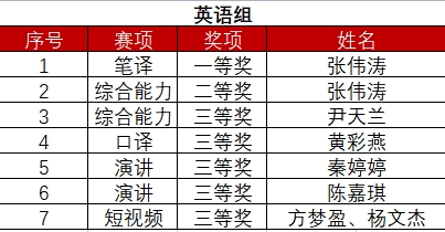此次佳绩的取得,正是学校“以赛促学、以赛促教”教学理念的生动体现,彰显了学校在培养具有家国情怀、国际视野的外向性复合应用型外语人才方面的扎实成效。未来我校将继续整合优质课程资源与实践育人平台,推动外语专业教学与课程思政、跨文化沟通能力培养深度融合,为学子搭建更多锤炼语言功底、提升综合素养的赛事舞台。(撰稿:林潮瑜、陈慧玲 审稿:刘沪娣)