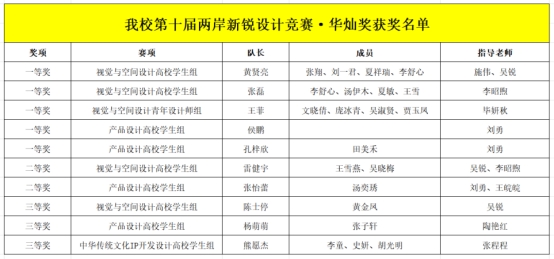 此次大赛,我校学子们载誉而归、不负热爱,不仅展现了我校学子敢闯敢试、精益求精的拼搏精神,更彰显了我校设计教育与两岸青年文化交流同频共振的育人成效。未来,我校将以此为契机,厚植创新土壤,搭建更优质的实践交流平台,全力帮助更多青年学子实现创意梦想,培育更多兼具专业实力与创新精神的设计人才,在人才培养与文化传承创新的道路上,续写新的荣光。(撰稿:师永伟、怀雨晴 审稿:刘沪娣)