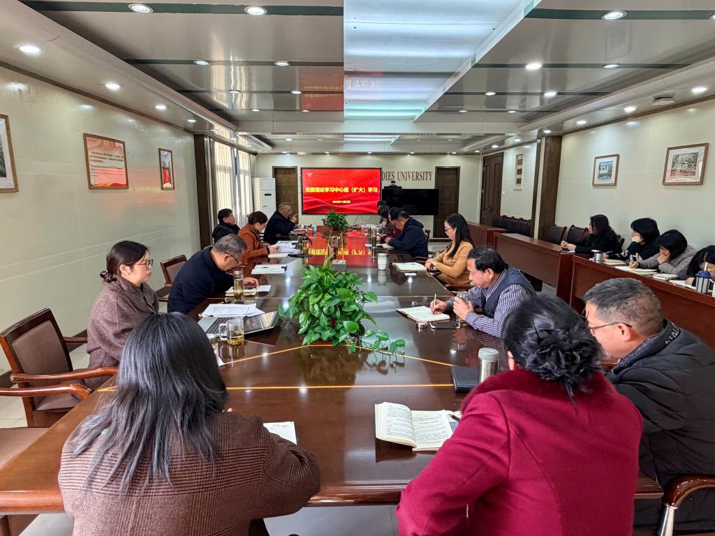 11月25日下午,学校党委在行政楼207会议室召开党委理论学习中心组(扩大)学习会。深入学习《中国共产党第二十届中央委员会第四次全体会议公报》《中共中央关于制定国民经济和社会发展第十五个五年规划的建议》(以下简称《建议》)等内容,党委理论学习中心组成员,相关职能部门负责人,各党总支(直属党支部)书记(副书记)参会,党委书记王红月主持会议并作总结讲话。