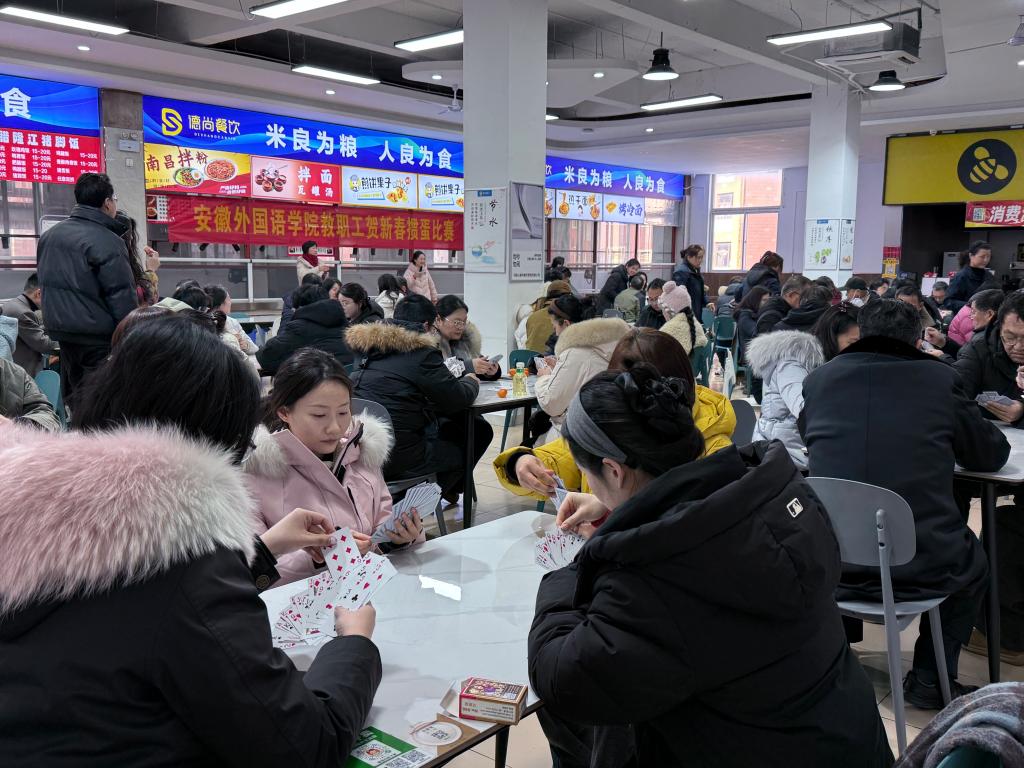 1月21日下午,由校工会主办、机关分工会承办的教职工贺新春掼蛋比赛在学校第一食堂二楼顺利举行。比赛吸引了来自各分工会的百余名教职工踊跃参与。