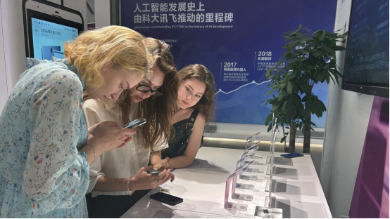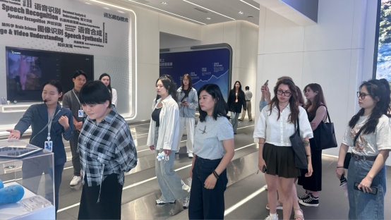 科大讯飞成立于1999年,是亚太地区知名的智能语音和人工智能企业,也是中国AI产业第一家上市公司。西方语言学院师生一行在科大讯飞欧美同学会执行秘书长徐健和科大讯飞欧美同学会秘书处主管顾丽杰的陪同下,参观了科大讯飞人工智能展厅,了解了企业在语音及语言、自然语言理解、机器学习推理及自主学习等核心技术研究领域的前沿技术水平,以及AI在教育、消费者、医疗、政法等行业的应用场景。