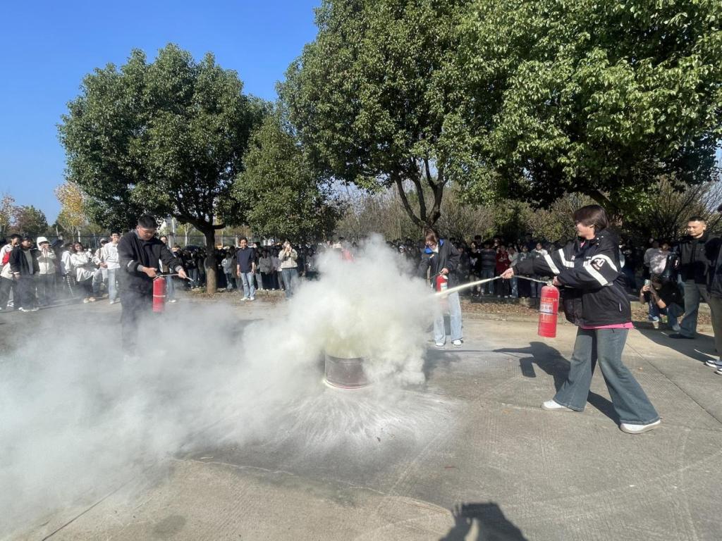 在认真观摩后,师生代表们纷纷走上前,在专业人员的指导下进行了灭火器扑救“油盆火灾”的实战体验。大家轮流操作,动作从生疏到熟练,成功将熊熊火焰迅速扑灭。通过亲身体验,师生们有效克服了对火灾的恐惧心理,掌握了扑救初期火灾的基本技能。
