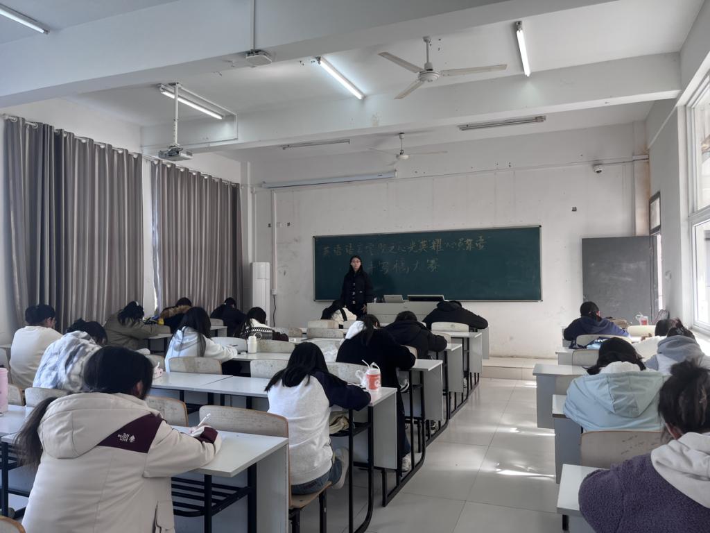 为展现英语学子专业风采,提升心灵成长深度,英语语言学院于11月24日在西语407教室举办“心光‘英’耀·心灵絮语”手写稿大赛。本次比赛以“青春心灵向阳生·英语世界逐光行”为主题,凭借“专业视角+心理成长”的独特定位,吸引广大学子积极参加。