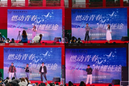 青春如歌,唱响时代华章;征途如画,绽放校园风采。近日,我校国际商务学院“燃动青春,声耀征途”暖冬音乐节在风雨操场举办,本次音乐节由刘富豪、孙婉婷、王薇雅、薛靖主持。国际商务学院党员教师代表及各二级学院分团委书记出席了本次活动。