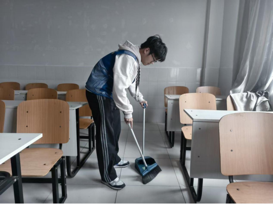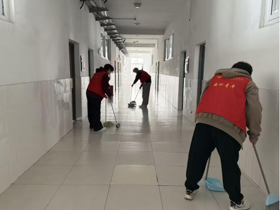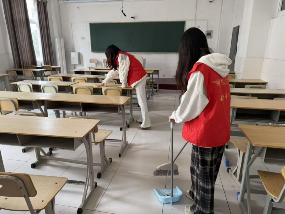 从教室到走廊,从桌面到角落,志愿者们认真细致、分工协作,红色与蓝色志愿马甲在教学楼中穿梭,成为春日校园的一道亮丽风景。院青协成员发挥示范引领作用,入党积极分子冲锋在前,展现了青年先锋的责任与担当。经过大家的努力,教学楼环境焕然一新,为师生营造了整洁舒适的学习与工作氛围。