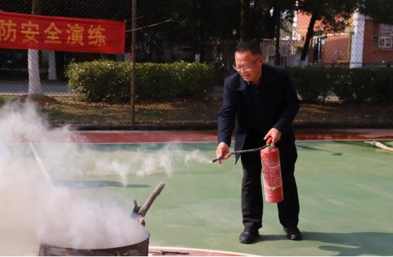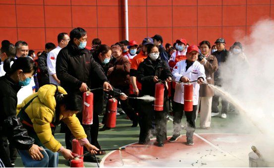 14时30分,火警警报响起,参演人员迅速从9#宿舍楼有序撤离至西侧篮球场。消防干事讲解消防安全隐患排查要点,详细介绍手提式干粉灭火器、室内外消火栓的用途、性能、原理及操作方法,并组织参训人员逐一开展实操训练,确保人人掌握灭火技能。