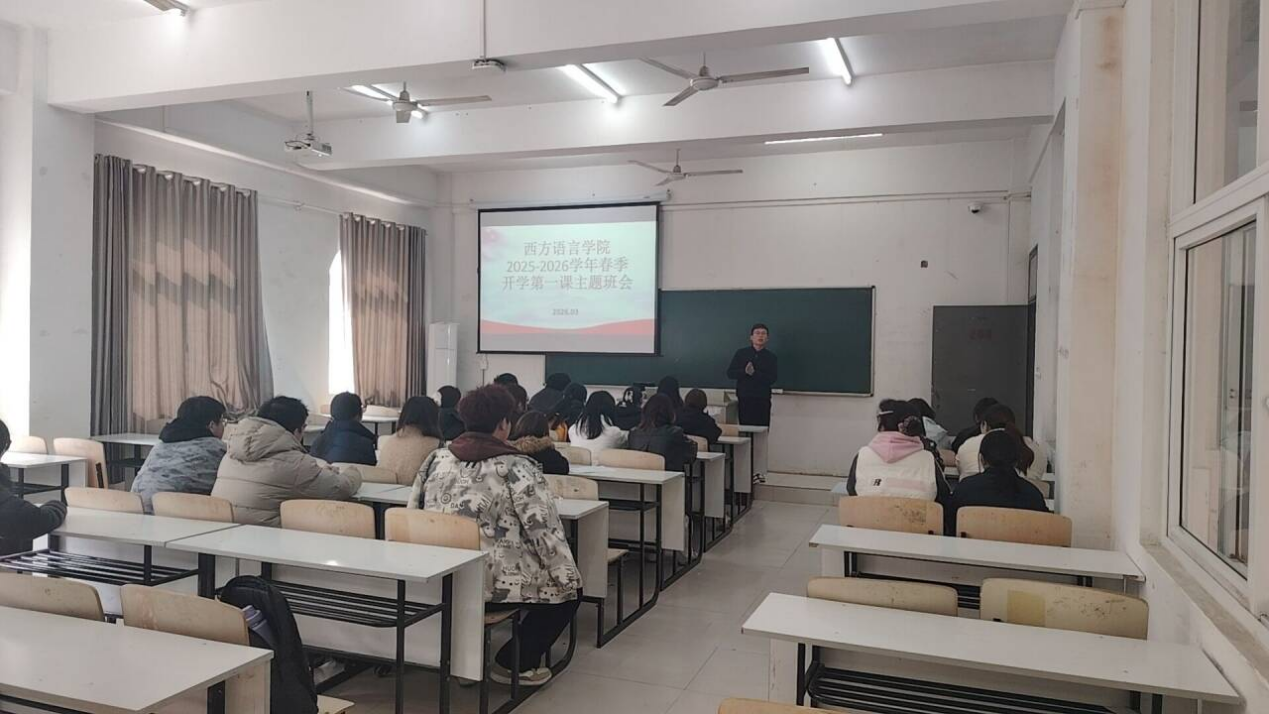 3月,学生返校正式开启新学期大学生活,西方语言学院组织开展了2026年春季学期“开学第一课”主题教育活动。本次活动旨在帮助学生调整状态、明确目标、增强安全意识,以更加饱满的热情和积极的心态投入新学期的学习生活。