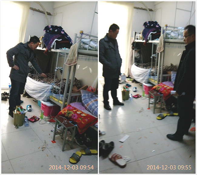为把学生安全工作做深做细做扎实,确保学校教学、工作和生活各项秩序的正常进行,2014年12月3日上午8点30分,国际旅游学院全体辅导员在党总支副书记周磊老师的带领下,对我院综合12栋、8栋、6栋宿舍楼国旅学生宿舍进行了违章用品的突击检查。一直以来,宿舍安全都是我们学院日常工作的重中之重,关系到我们每个人的安全,所以进行这次违章用品的突击检查有非常重要的意义。