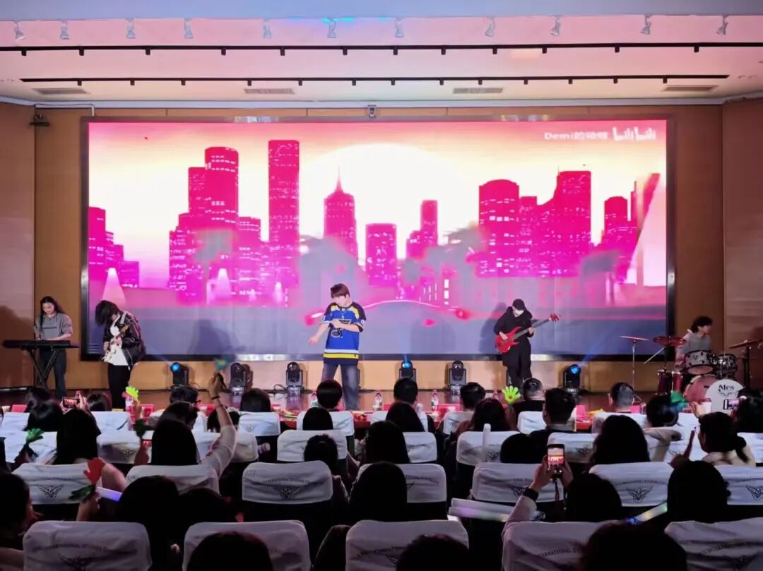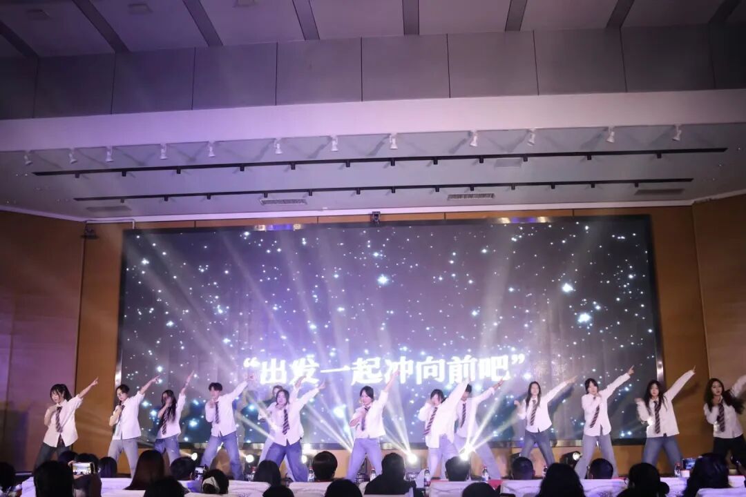 T台秀《幻色觉醒》融合时尚与创意,模特的自信展示为晚会增添别样风采;古筝演奏《国乐破三界》奏响古韵,传统民乐的魅力直击人心;舞蹈《we rock》动作整齐、气势昂扬,诠释青春的拼搏精神;歌曲串烧《逆光》《到时说爱我》《雨爱》用多元曲风传递情感,引发观众共鸣;最终,大合唱《身骑白马》以恢弘的歌声收尾,让整场晚会在温馨与感动中落下帷幕。