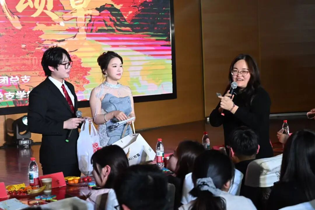 晚会全程穿插多轮互动抽奖环节,成为点燃现场氛围的惊喜亮点。抽奖环节公设置三个奖项,分别由陈振华副院长,周磊副书记和牛芳芳院长相继开启三等奖、二等奖和一等奖的抽取,台下观众高声呼喊,期待幸运降临,现场紧张与欢乐的气氛交织,观众在主持人的幽默互动中满怀期待,为晚会增添了满满的互动感与趣味性。