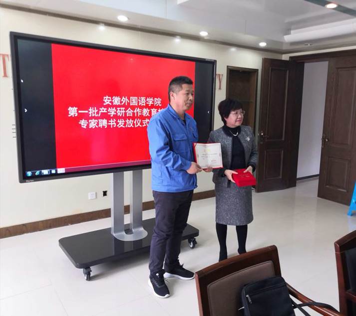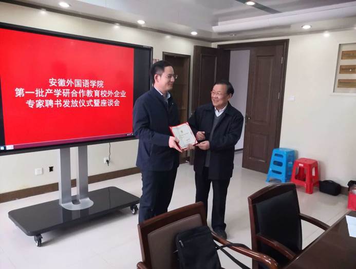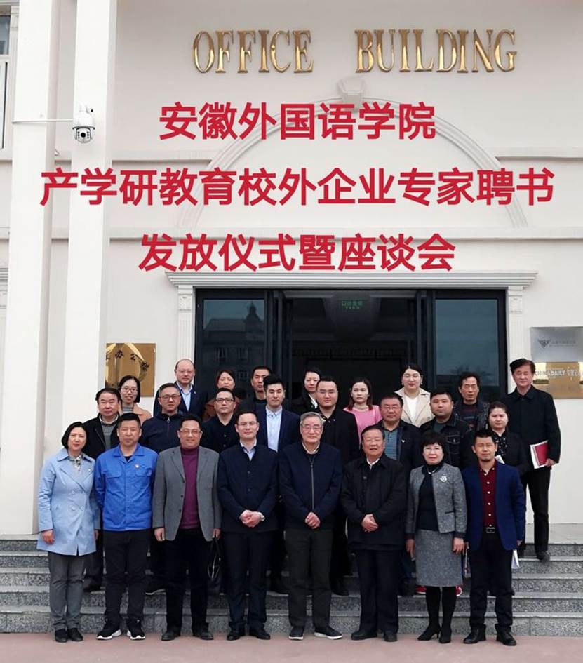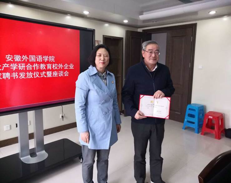 3月27日上午,安徽外国语学院组织召开“安徽外国语学院第一批产学研合作教育校外企业专家聘书发放仪式暨座谈会”。校领导、校外企业专家、院部产学研合作工作组长副组长、教务处、招就办、学生处、科研处等40余人参加了座谈会,座谈会由副院长高茜主持。