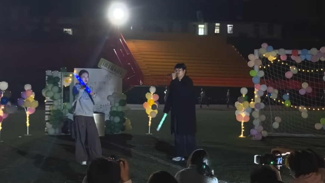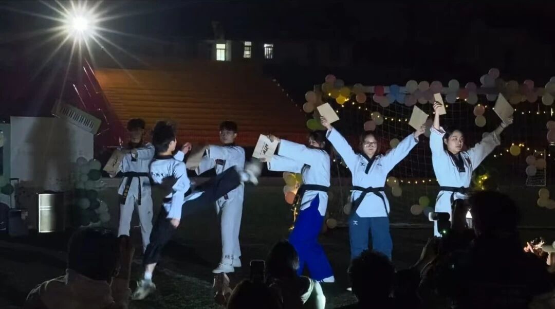 洪张芷晴、吴彦慧带来歌曲《如果的事》,旋律缠绵动人,歌声温柔坚定,勾起同学们对社团时光的共鸣;张子铭献唱《Diamonds》,嗓音清亮有力,歌曲中的坚定与闪耀感振奋人心;