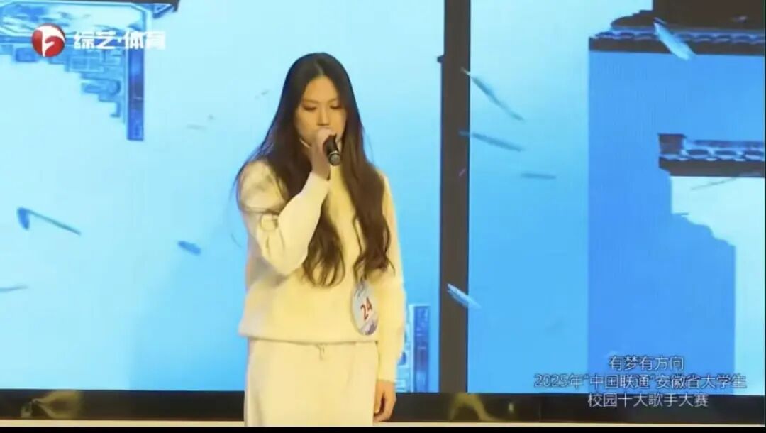 安徽省大学生校园十大歌手大赛作为省内极具影响力的校园文化品牌活动,始终以“弘扬青春正能量、展现学子风采”为宗旨,为热爱音乐的大学生搭建了交流展示的优质平台。大赛自启动以来,历经校级选拔、省级初赛等多个环节,竞争异常激烈。我校两位同学以对音乐的赤诚投入备赛,在课余时间精研选曲风格、打磨演唱技巧、设计舞台表现、拿捏情感表达,形成鲜明个人舞台风格。罗璇的演唱兼具力量与温情,嗓音极具穿透力,能够精准传递歌曲深层情感;冯潇则以细腻婉转的唱腔见长,舞台表现力灵动自然,极具感染力。