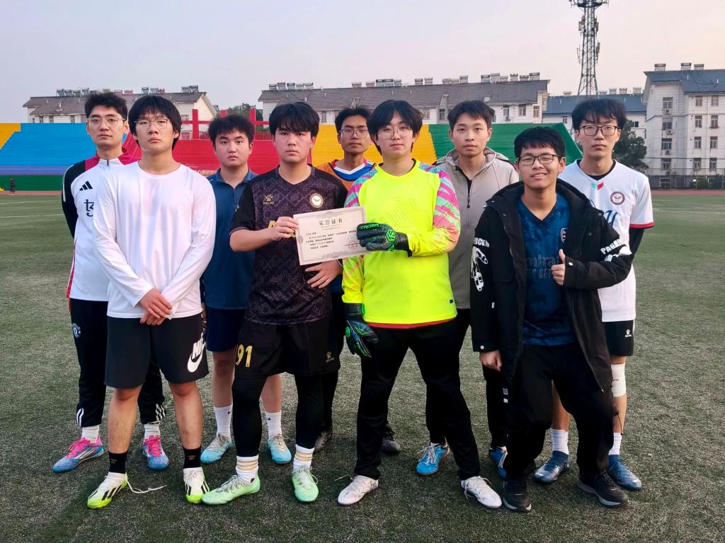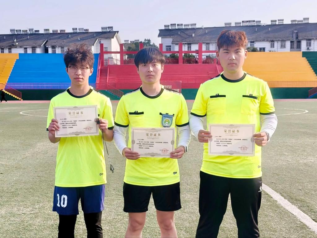 在比赛中,三位专业裁判员全程护航,足球队成员们全力以赴,用公平公正的执裁与热血拼搏的竞技共同书写青春风采。裁判员们始终坚守岗位,以精准的判罚、严谨的态度维护着赛场秩序,确保了每一场比赛的公平公正与顺利进行。为表彰其突出贡献,组委会特为三位优秀裁判员颁发荣誉证书,感谢他们用专业素养为赛事保驾护航。同时,组委会也为四支男子队伍的所有成员均颁发了荣誉证书,以表彰大家的积极参与和不懈努力。