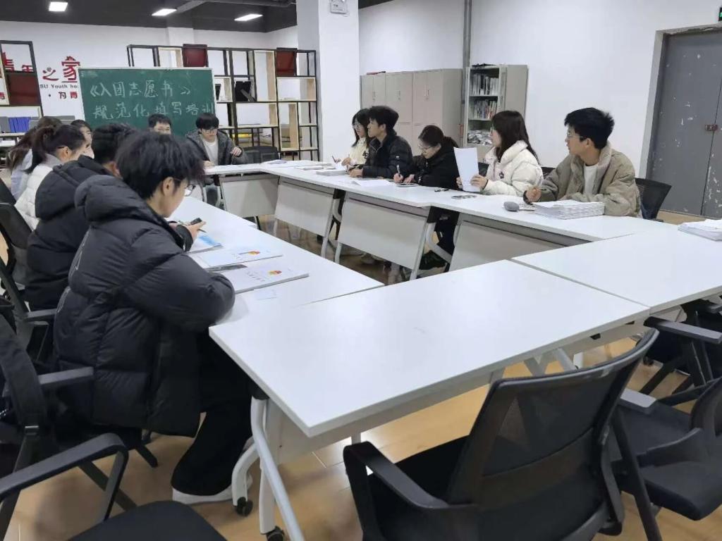 为进一步完善学校团员发展工作体系,严格规范团员发展流程,提升团员发展质量,校团委办公室于青年之家开展《入团志愿书》规范化填写专题培训。本次培训由校团委学生副书记王仁锐,校团委办公室主任邢欢绣,以及校团委办公室副主任魏子超、王子祺共同组织。各二级学院团总支学生副书记参加了此次培训并进行了系统学习。