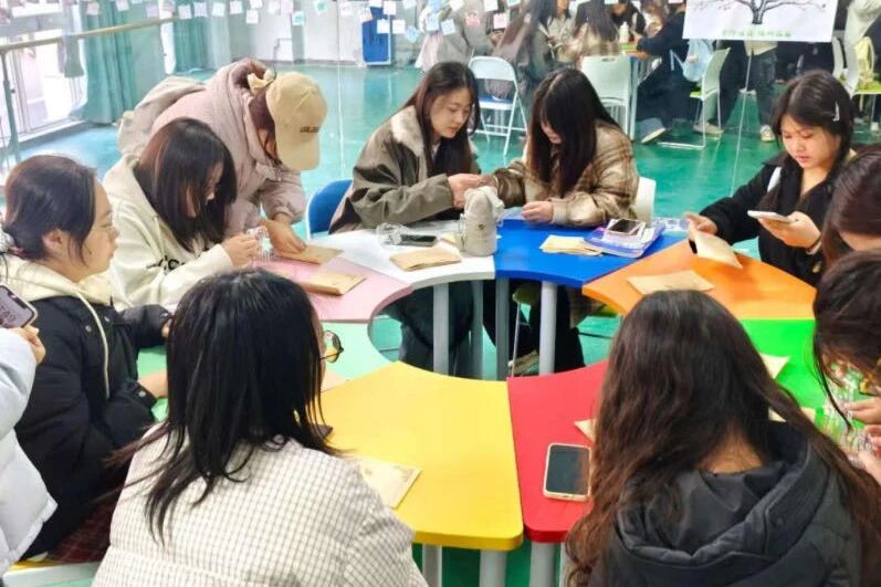 每一次贴纸的粘贴、每一笔色彩的点缀,不仅是创意与审美的融合,更是同学们内心情感的细腻梳理与温柔安放。在这个充满温度与共鸣的创作空间里,那些平日难以用言语具象化的情绪,都通过文字的组合与画笔的勾勒,找到了恰当的表达出口,成为独属于每个人的珍贵情感印记。
