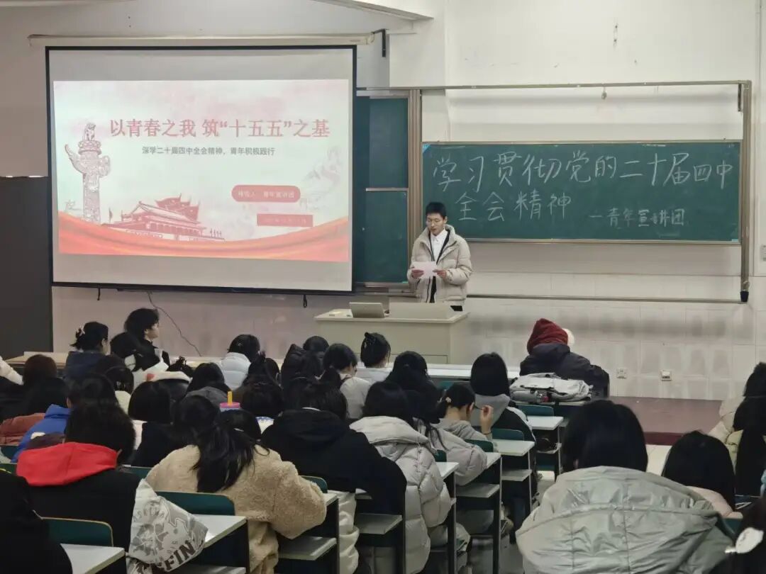 为深入学习宣传贯彻党的二十届四中全会精神,引导广大青年学生深刻领会全会核心要义和实践要求,将个人成长融入国家发展大局。近日,我校青年宣讲团在四教105、106教室同步开展“学习贯彻党的二十届四中全会精神”专题宣讲活动。