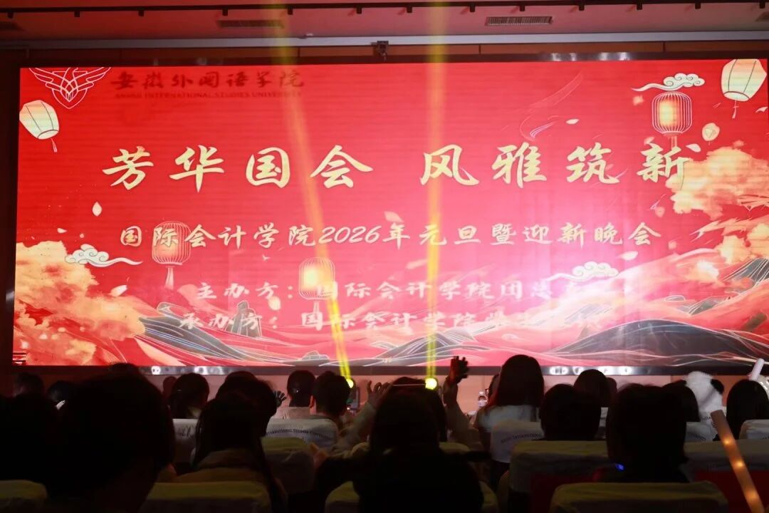 为了迎接新年到来,丰富学生课余文化生活,增强学院凝聚力,安徽外国语学院国际会计学院于12月30日在圆形报告厅举办了以“芳华国会·风雅筑新 ”为主题的元旦晚会。