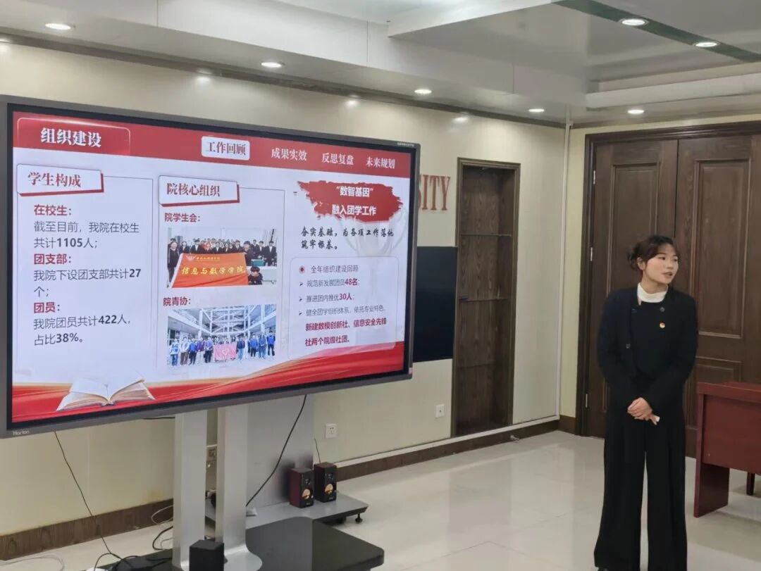 会议最后,校团委书记于焱作总结讲话。她对各二级学院团总支一年来的辛勤工作和取得的扎实成效予以肯定,并对未来工作提出明确要求:要持续强化思想政治引领,筑牢青年学生信仰之基;要深度融入学校育人中心工作,打造更多具有学院特色、贴近学生需求的品牌活动;要不断深化改革创新,优化“第二课堂”成绩单制度,加强团干部培养,激发基层组织活力;要凝聚多方力量,共同营造积极向上、奋发有为的校园文化氛围,为推动学校团学事业高质量发展、助力学生成长成才和学校长远发展作出新的更大贡献。