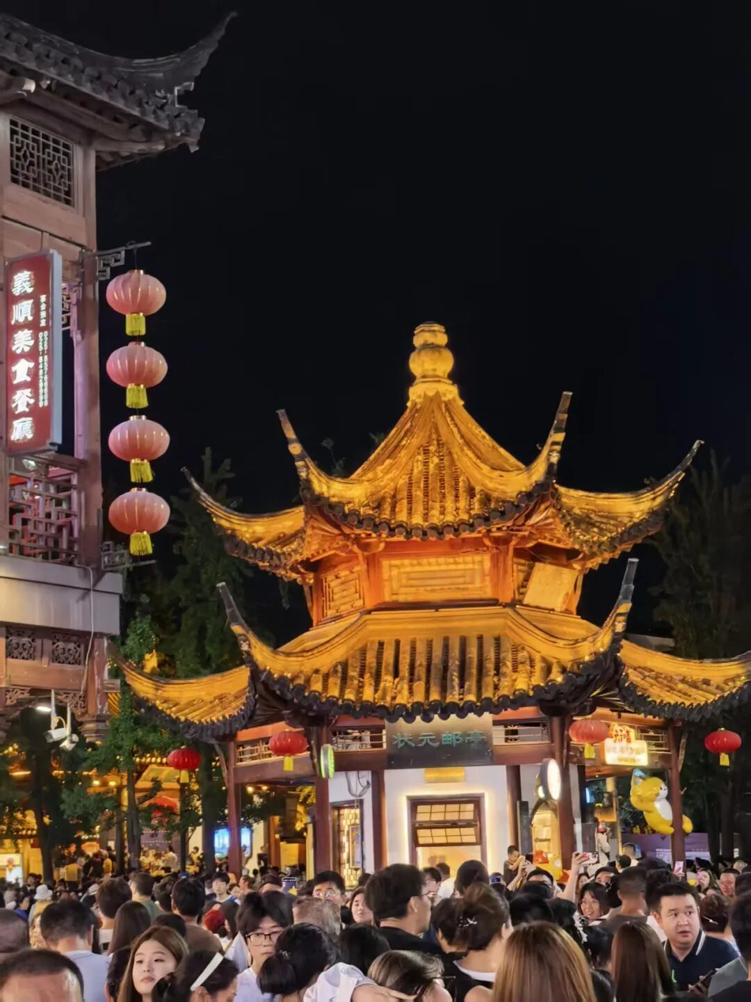 两岸的商铺飘着鸭血粉丝汤的鲜