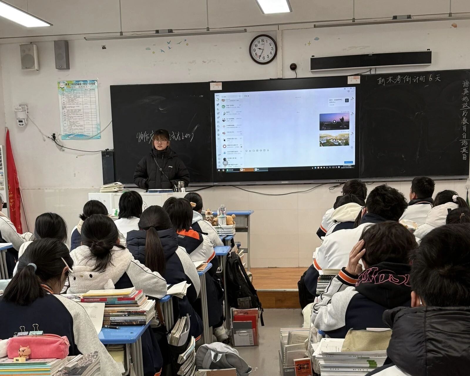 寒假期间,安徽外国语学院学生费紫颜回到家乡濉溪县,以“讲好安外故事,搭建升学桥梁”为主题,在濉溪二中开展母校宣传实践活动。通过线下宣讲与线上跟进相结合的方式,她向高中学子全面介绍安徽外国语学院的办学特色、专业优势及育人成果,用实际行动践行大学生的社会责任与青年担当。