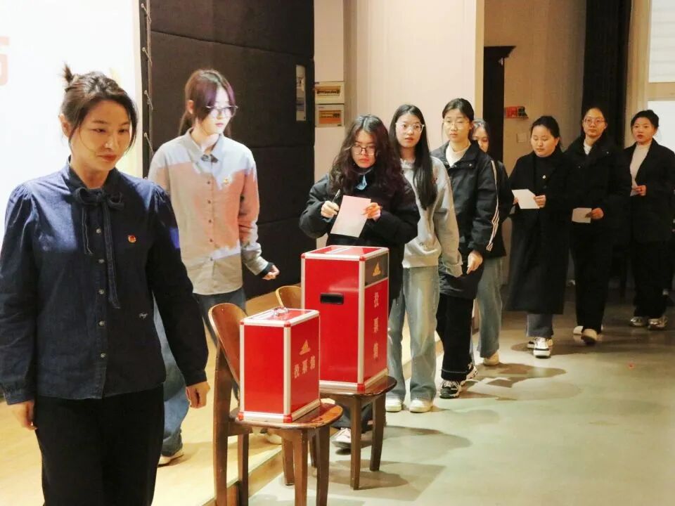 随后,大会严格遵照《中国共产主义青年团普通高等学校基层组织工作条例》《中国共产主义青年团基层组织选举工作条例》等相关规定,依次宣读选举事项、监票人及计票人名单,现场规范分发选票。全体代表以高度负责的态度,本着公平、公正、公开的原则,采用无记名投票的方式进行差额选举,最终顺利产生20名出席安徽外国语学院第三次团代会的正式代表和13名出席安徽外国语学院第六次学代会的正式代表。