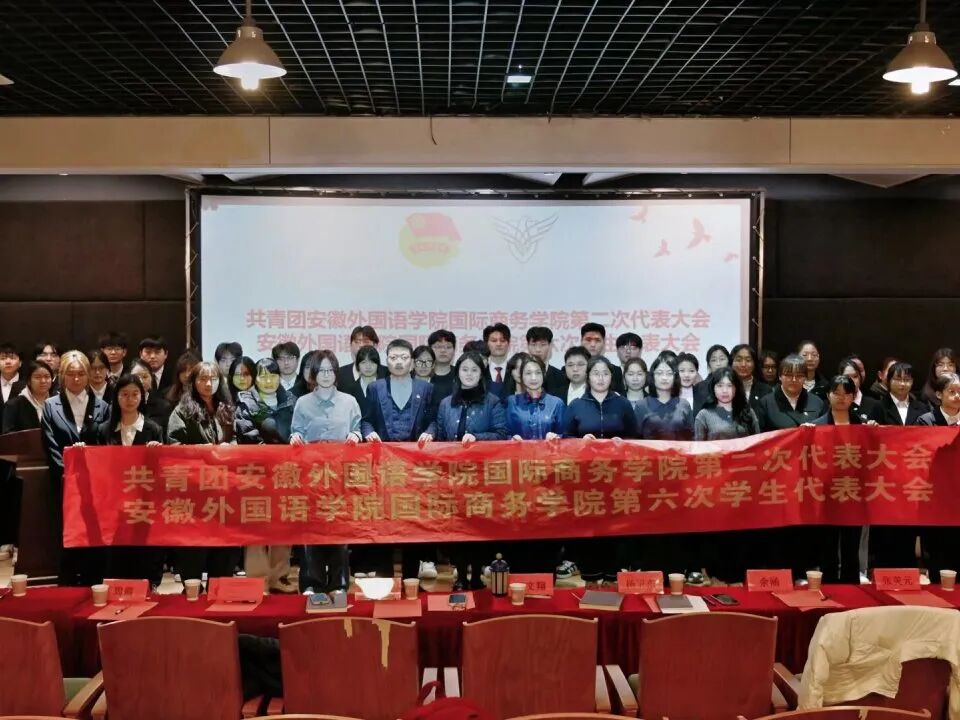 为深入学习贯彻习近平新时代中国特色社会主义思想和党的二十届四中全会精神,全面总结学院团学工作成果,科学谋划未来发展方向,选举产生出席学校团代会、学代会正式代表,3月19日下午三点三十五分,共青团安徽外国语学院国际商务学院第二次团员代表大会与第六次学生代表大会在图书馆一楼放映厅正式召开。国际商务学院党总支副书记何文翔、校团委副书记杨卫东、校团委老师陈婷婷、国际商务学院团总支书记余涵及学院全体辅导员出席大会,学院全体团员代表、学生代表齐聚一堂,共赴盛会、共话青春。此次大会由刘富豪主持。