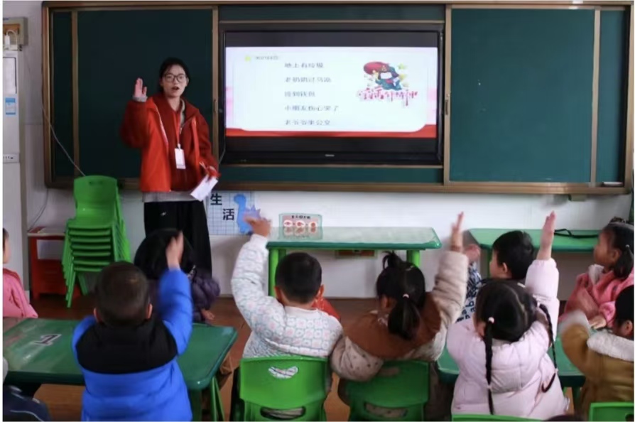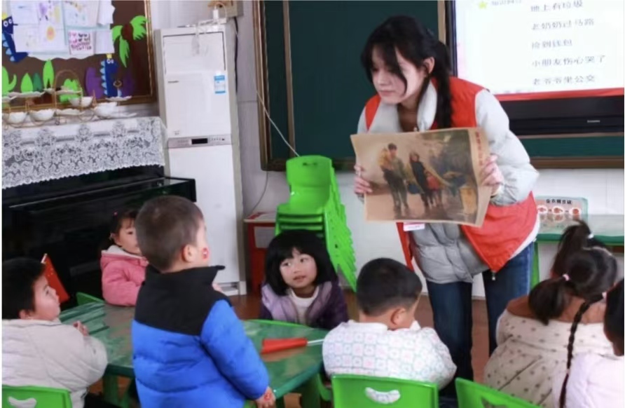 萤火支教团则针对小班、大班幼儿设计了不同的实践内容,让雷锋精神在实践中落地生根。在小班,支教团成员通过生动有趣的雷锋故事和互动问答,向孩子们介绍雷锋的感人事迹,传递无私奉献的精神内核,让幼儿在聆听与互动中初识雷锋精神。