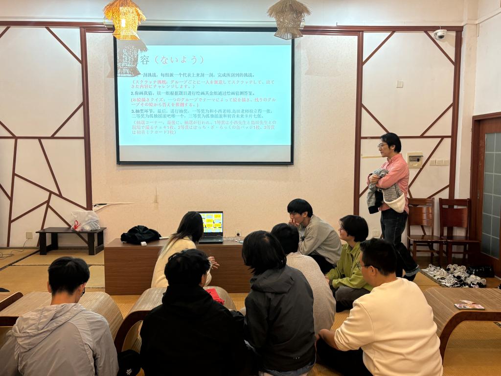活动采用课堂互动的形式,邀请日语外教小西幹和岛田典子对“口语角”活动予以指导,各年级日语专业的同学们齐聚于教室。本次活动设置了“刮一刮挑战”“你画我猜”等趣味环节,增添了同学们学习日语的乐趣。两位外教凭借幽默风趣的互动风格活跃了全场气氛,同学们踊跃发言、畅所欲言,在自然的交流中收获了丰富的语言知识与文化见解。