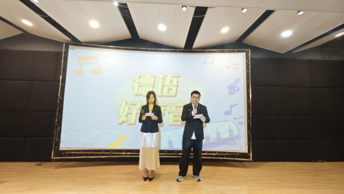 11月18日,德语歌曲演唱赛在图书馆放映厅举行。演唱赛为学生们提供了展示语言运用能力与艺术才华的舞台。参赛者通过演绎不同风格的德语歌曲,不仅锻炼了语音语调,更在音乐中加深了对德语韵律与情感表达的感受。